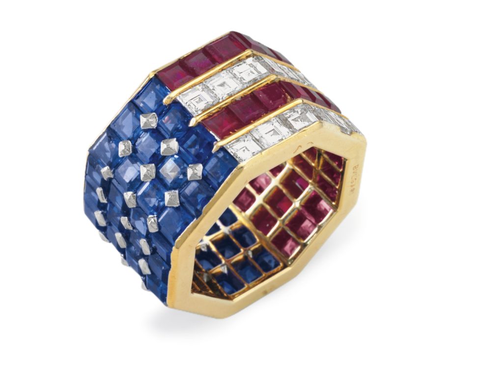 Среди 700 с лишним лотов – живопись, скульптура, украшения, книги, мебель и различные «сувениры», например фрагмент Берлинской стены с автографом ($277,5 тыс.). Рекордсменом торгов стало кольцошестигранник Нэнси Рейган от Bvlgari, выполненное в цветах американского флага, – за него заплатили $319 тыс. при начальной стоимости $5–7 тыс. Громкое имя дарителя увеличило цену во много раз для большинства лотов. Так, картина «Для миссис Рональд Рейган. Фейерверки 4 июля», написанная Фрэнком Синатрой и преподнесенная жене президента на день рождения, была продана за $233,5 тыс. – при эстимейте $6–8 тыс.
