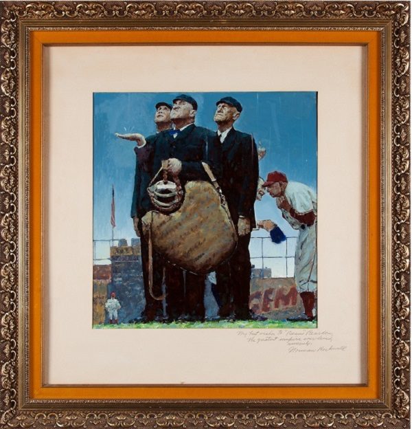 В рейтинге самых дорогих спортивных лотов 2017 года, составленном журналом Forbes, не обойтись, разумеется, без очередного имущества игрока Бейба Рута – чемпионского кольца ($2,1 млн; выставлено на продажу Чарли Шином). Но гораздо интереснее другой лот, связанный с бейсболом, – произведение настоящего искусства. Знаменитый американский художник Норман Роквелл в 1948 году написал картину «Tough Call» с изображением трех судей на бейсбольном матче под дождем.