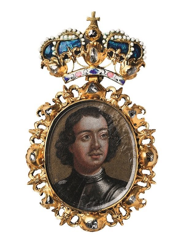 Скипетр Петра I и наградной знак с его портретом. ФОТО: ПРЕДОСТАВЛЕНО ПРЕСС-СЛУЖБОЙ МУЗЕЯ МОСКОВСКОГО КРЕМЛЯ