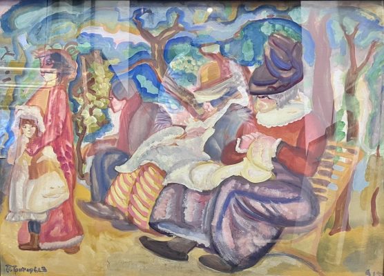 Безусловный фаворит торгов – гуашь Бориса Григорьева «Няньки в Булонском лесу», которая совсем недавно экспонировалась на выставке «Охотники за искусством» в Музее русского импрессионизма. Также картина была представлена на персональной выставке Григорьева, проходившей в 1989 году в Псковском государственном объединенном историко-культурном и художественном музее-заповеднике. Гуашь подписана 1915 годом и относится к группе жанровых сцен, связанных общей тематикой, исполненных мастером после путешествий в Париж в 1911 и 1913 годах. Именно эти рисунки, представленные на выставках объединения «Мир искусства», принесли Борису Григорьеву заслуженную известность.