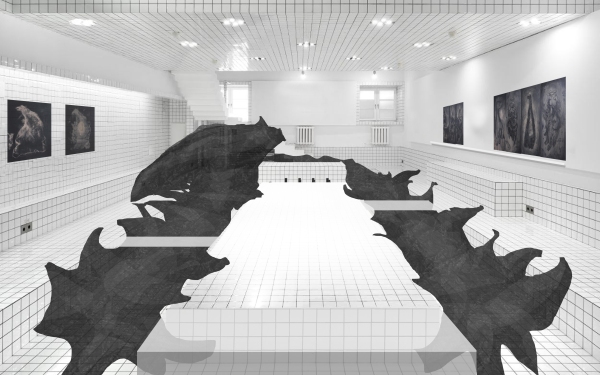 Художник выстраивает движение зрителя, словно вовлекая его в игру с пространством: подиумы для показа и зоны для осмотра работ меняются местами. Ключевой на этом пути станет рукотворная пещера-оболочка из кальки, задуманная как портал в реальную пещеру в Нижегородской области.