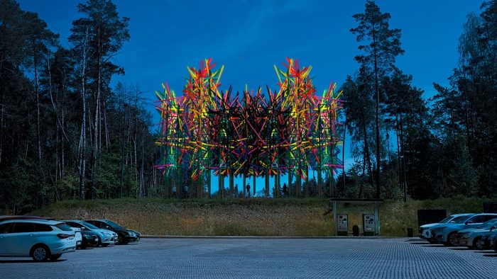 Арт-объект «Супрематический лес», созданный Николаем Полисским специально для фестиваля «Малевич», интегрирует формы супрематизма в природное окружение. Его высота более 12 м, а для строительства мастера из Никола-Ленивца используют более 2 тыс. палок орешника – материала, к которому художник часто обращается в своих проектах. Центральным элементом композиции станет черный куб – объемное воплощение «Черного квадрата» Казимира Малевича. Игра света и тени внутри куба создаст эффект глубины, притягивающий взгляд и побуждающий к более детальному рассмотрению. После завершения фестиваля объект останется в парке Малевича.
