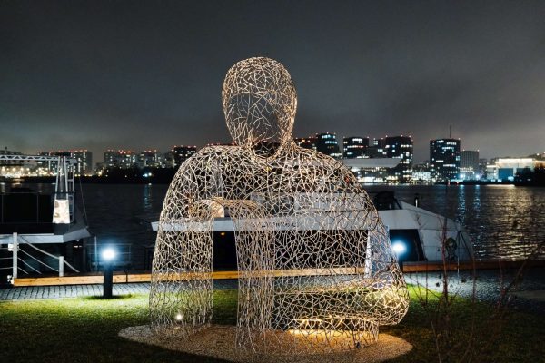 Гуляем по Сколково дальше. На улице Архимеда, сразу напротив ЖК «Квадро» – инсталляция «Погружение» из серии Paper Boat («Бумажный кораблик») Мехмета Али Уйсала (Турция). Турецкий скульптор мастерски погружает зрителей в детские воспоминания с помощью образа бумажного корабля.