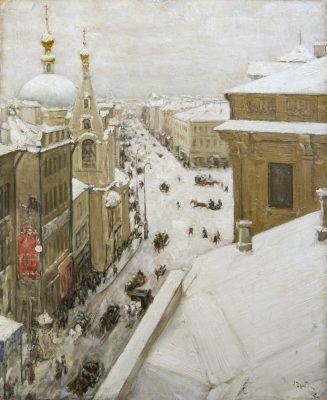 Героиней выставки станет и стремительно меняющаяся Москва конца XIX – первой трети XX века. Облик «Москвы и москвичей» на минус первом этаже музея проиллюстрируют работы преимущественно преподавателей и выпускников Московского училища живописи, ваяния и зодчества – Валентина Серова, Иллариона Прянишникова, Константина Юона – и молодых авангардистов Ильи Машкова, Василия Кандинского, Ольги Розановой. Почувствовать нерв наступающего XX века помогут инсталляции современного художника Михаила Рубанкова.