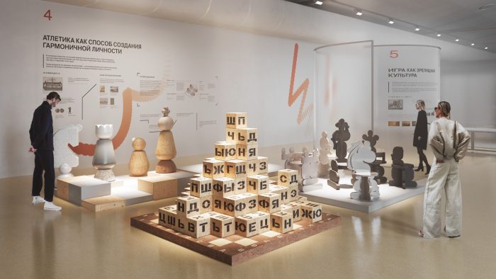 Экспозиция построена как игра, в которой зритель становится участником. По мере движения через зал можно пробовать разные виды активности – от древних игровых практик до современных спортивных симуляций. Внутри экспозиции – серия аттракционов и интерактивных зон, где спорт превращается в инструмент исследования самого себя. «Мы намеренно сделали выставку перформативной и эмоциональной – она не про созерцание, а про участие. Нам было важно показать, что в разные эпохи спорт служил различным целям: создавал иерархии, помогал разрешать конфликты, становился основой для объединения и эволюции общественного сознания», – говорит куратор и режиссер выставки Дария Женихова (компания «Культура потребления»).