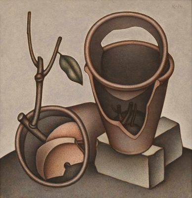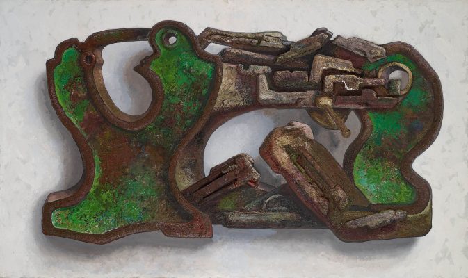 Выставка «Опознанный объект» приурочена к 90-летию классика российского современного искусства Андрея Гросицкого. Его стилистика во многом формировалась на фоне существовавшего во время хрущевской оттепели «другого искусства». В фокусе внимания Гросицкого был, прежде всего, предметный мир. Его композиции барочны, для них характерно неукротимое движение энергии масс из глубины произведения наружу. Живопись художника, которую можно назвать, скорее, не картинами, а объектами, проявляет витальность неживых предметов, будь то тюбик от краски, лампа, мясорубка, железные трубы, гайки и др.