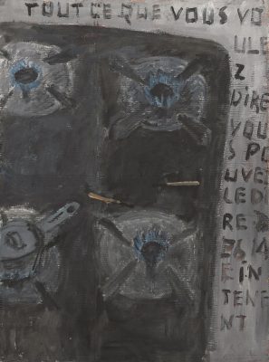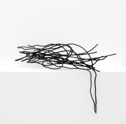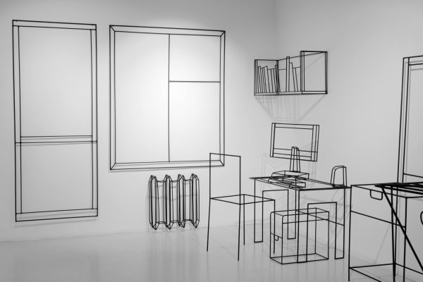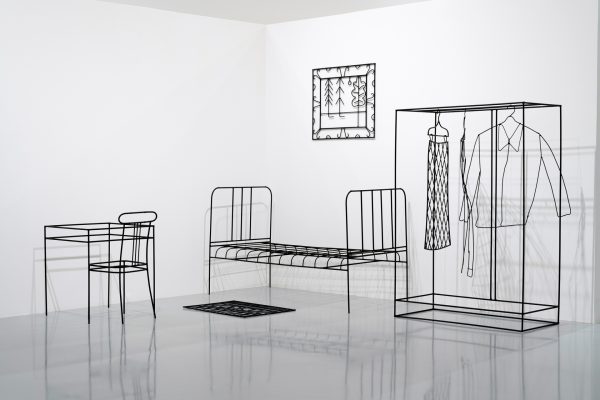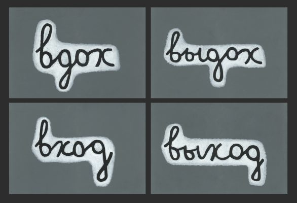 Первая посвящена недавно ушедшей от нас Ане Жёлудь, одной из самых ярких художниц российской арт-сцены последних 20 лет. Выставка «Вдох выдох» – это своеобразный конспект ее творчества, включающий большинство концептуально значимых работ. Живопись и металлические скульптуры Жёлудь узнаваемы с первого взгляда. Она визуализировала контуры окружающего нас предметного и природного мира, часто используя металлические прутья, с помощью которых создавалась метафора невидимых связей, окутывающих наш мир. Создавая скелеты окружающих предметов: стола, стульев, вешалки, рояля, она проявляла суть, душу того, что изображала, – в ее объектах пустота говорила больше, чем контуры. Важнейшая часть творчества Ани Жёлудь – маленькие «картинки», где на сером фоне из белого проступают лаконичные слова, написанные детским почерком: «вход», «выход», «вдох», «выдох»…