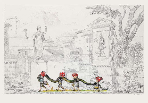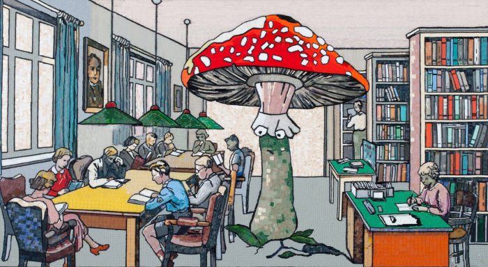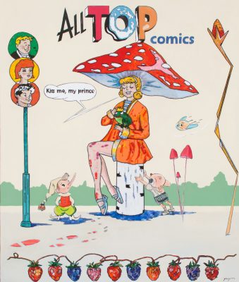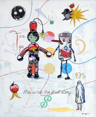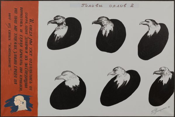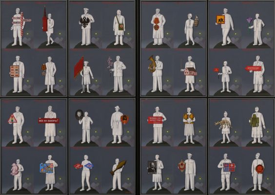 Владимир Григ, чью персональную выставку «Спасибо вам, что были с нами» также можно увидеть в МАММ, – один из самых ярких современных российских художников. Большинство работ, представленных в экспозиции, выполнено в сложной технике мозаики из стекляруса на холсте, в которой автор работает в последние годы. Используя различные медиа, Владимир Григ создает фантастические миры, наполненные визуальными алогизмами. В одном воображаемом пространстве здесь соседствуют герои русских сказок, классических комиксов и популярных анимационных фильмов.