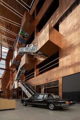 На террасе пятого этажа музея представлена инсталляция Александра Бродского – художника-архитектора мирового уровня, одного из основателей «бумажной архитектуры», участника Венецианской архитектурной биеннале и автора работ, вошедших в собрания Русского музея, ГМИИ им. А. С. Пушкина, MoMA и Tate Modern. Вслед за спроектированным для квартала Зиларт «Домом с голубями» – зданием, где на карнизе установлены крупные скульптуры голубей по эскизам Бродского, – художник создал здесь еще один «городской дом» – «Приют невинных».
