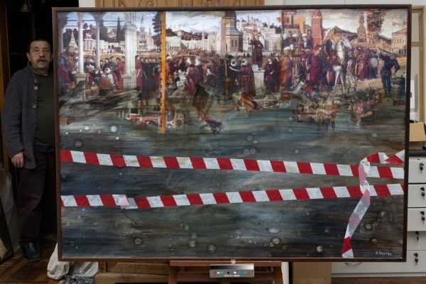 Съемки картины начались в 2023 году во время подготовки его выставки «Карпаччо, высокая вода» в Эрмитаже, и этот процесс становится для фильма поводом выстроить разговор о времени, памяти, уязвимости и сохранности культурного слоя перед лицом разрушительных стихий. «Высокая вода» не столько рассказывает биографию художника-свидетеля нескольких эпох, сколько фиксирует процесс его мышления, его способ смотреть на город и мир и преломлять время в своем творчестве.
