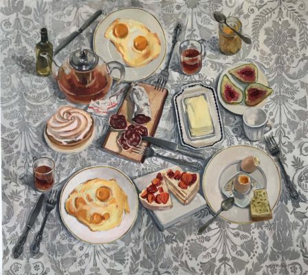 Основу проекта «Комореби» составили картины последних десяти лет. Многие написаны в период пандемии и самоизоляции, когда мастерская стала для авторов пространством, в котором можно было по-прежнему чувствовать себя свободно. В экспозиции около ста работ. Ирина ведет хронику близкого круга, ее натюрморты – это следы теплых встреч и путешествий. Пейзажи Георгия демонстрируют единство природы и в глобальном ландшафте, и в мелких деталях. В залах музея противоположности представлены в гармонии: вода и суша, свет и темнота, сладкое и несладкое – это не оппозиции, а целое, которое не надо разделять. Особенно, если ты способен заметить комореби… Это слово из названия выставки заимствовано из японского языка и обозначает момент, когда солнечные лучи проходят сквозь кроны деревьев, создавая переменчивое струение света. Образ становится метафорой художественного метода Тотибадзе: внимание к мимолетному, к моментам, в которых соединяется разное и рождается гармоничное целое.