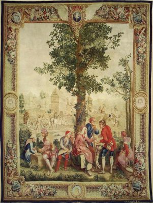 Во второй половине XVII века брюссельские мастерские начинают утрачивать свое художественное лидерство, уступая первое место французам. Учрежденная в 1667 году Королевская мануфактура Гобеленов становится к началу XVIII столетия законодателем художественного стиля, и ее продукция оказывает большое влияние на шпалерное производство других европейских стран. Фамилия Гобелен, некогда принадлежавшая французской династии красильщиков и ткачей, превратилась со временем в одно из общепринятых названий шпалер.