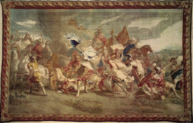 Завершают экспозицию два произведения XVIII века. Брюссельская шпалера «Битва Диомеда и Энея» выполнена по проекту фламандских живописцев под большим французским влиянием. Логическим завершением выставки является гобелен «Август» из серии «Месяцы Луки», который знаменует триумф искусства французской шпалеры в XVIII столетии и ее преемственную связь с южнонидерландской художественной традицией.