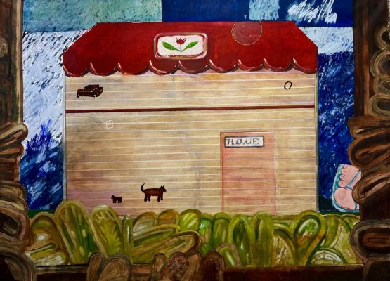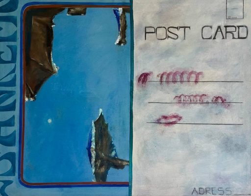 Проект «Дом моей мечты», открывающийся в малом пространстве галереи, – это выставка-путешествие, которая состоит из трех разделов, точнее, из трех сценических актов. Художник и сценограф Георгий Хомич посвящает первый раздел – «Чердак» – пространству памяти и архива, где живописные полотна имитируют формат почтовых открыток и писем самому себе. Работы выполнены в технике коллажа, сочетающей масляную живопись с фрагментами старых фотографий и выцветших документов.