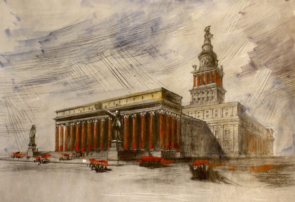 Гинтовт называет свой стиль «имперским авангардом», жанр определяет как «новый русский классицизм», а задачей своего творчества ставит «победу центростремительных процессов над центробежными». Его всегда интересовала эпоха великих свершений, эстетика большого русского стиля. На этот раз специально к выставке художник создал урбанистические проекции городской среды будущих улиц и площадей Москвы. В новой мифологической, идеальной столице устремленные в небо восточные башни, вдохновленные архитектурными сказками Якова Чернихова, соседствуют с привычными московскими зданиями; цитаты Дворца Советов, как его видел Алексей Щусев, создают гармонический, почти музыкальный строй геометрии красно-золотого города.