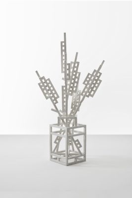 Закономерно, что тема города – одна из сквозных в творчестве Шелковского. Энергетические пульсации городского пространства материализуются то в жестких решетчатых силуэтах, похожих на чертежи или диаграммы, то в конструкциях, будто выращенных из фракталов. Визуально они отсылают к архитектонам и планитам Малевича – моделям космических строений для людей будущего, которые Шелковский впервые увидел на выставке «Париж – Москва» в 1979 году.