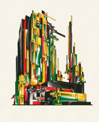 Последний зал посвящен одному из самых загадочных циклов Чернихова «Дворцы и пантеоны». Антиутопичный взгляд, соединенный с виртуозным рисованием, создает композиции, вмещающие в себя пространство XX столетия. Многие мотивы, обозначенные Черниховым в этом цикле, нашли воплощение в современной архитектуре, а также фантазийном мире видеогейминга и кино.