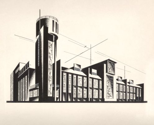 Шестой зал воссоздает проектную мастерскую Чернихова-архитектора. Самой известной постройкой стал Канатный цех с водонапорной башней завода «Красный гвоздильщик», где с 10 июля 2025 года располагается музей Якова Чернихова.