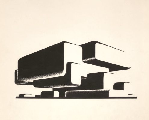 Первый зал выставки при помощи мультимедийного решения позволит посетителям почувствовать уникальность архитектуры Чернихова, где пространство как будто освобождается от законов гравитации, а идеи – от концепций «правильного» и «должного».