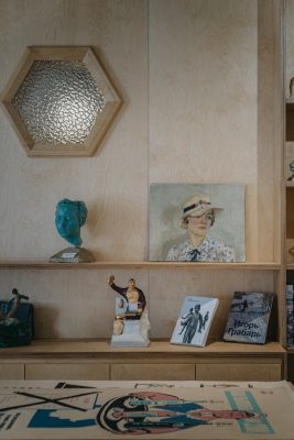 В пространстве «Кабинет» будут преобладать бытовые предметы из мастерских. Все они когда-то использовались художниками, включая «талашкинский» стул из мастерской Макса Бирштейна, холстянную палитру и печатную машинку Юрия Пименова.