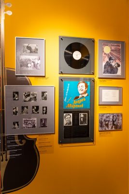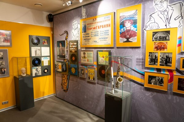 Среди мемориальных вещей в экспозиции: сценический костюм, необычная коллекция галстуков и бабочек Георгия Гараняна; портфель, наушники, очки, одна из любимых книг музыканта – «Рассказы и повести» Михаила Зощенко из семейного архива; уникальное собрание грампластинок, среди которых грампластинка с автографами участников ансамбля «Мелодия» на обложке, диск Oregon in Moscow, запись которого была номинирована на премию «Грэмми»; награды – национальная российская премия в области искусства «Овация» и премия регионального телевизионного конкурса «Человек года» «Бегущая по волнам»; редкие фотографии, афиши, музыкальные рукописи инструментальных и вокальных сочинений Георгия Гараняна; платье и аксессуары Людмилы Гурченко из телевизионного фильма-спектакля «Бенефис Людмилы Гурченко», фотопортрет Владимира Высоцкого, созданный специально для оформления пластинки, записанной ансамблем «Мелодия».