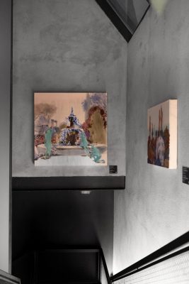 Экспозиция в Wynwood разворачивается в лестничном пространстве холла. Первая встречающая зрителя работа отсылает к прошлому Анатолия Akue, а именно к увлечению уличным искусством. Это оказалось очень созвучно с центральным мотивом дизайна отеля – образом испещренного граффити района Wynwood в Майами. В зоне ожидания лифта разместилась инсталляция выпускницы Академии художеств им. И. Репина Евы Хелки «Не верь», где выходящие из стены руки тянутся навстречу, но будто замирают во времени, давая гостям возможность задуматься о том, во что они верят и о чем мечтают. На самых верхних этажах, в открытой небу мансарде, заняли свое место работы Ольги Аксеновой и Артура Самофалова, чьи герои ищут точку опоры на пересечении реальных и вымышленных миров. Финальной точкой становится тонкая и нежная акварель на бумаге Артура Самофалова, прокладывая тот самый невидимый, но такой значимый мост на пути нашего внутреннего выбора, трансформации и выхода из промежуточной точки.