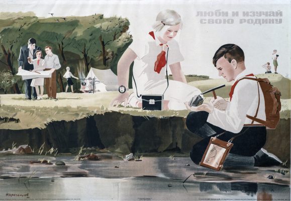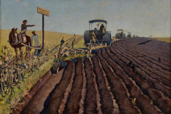 Перед художниками соцреализма ставилась задача создавать яркое динамичное искусство, несущее в себе мощный оптимистический заряд, зримые образы великого периода истории с его достижениями, героическим преобразованием, строительством нового общества, нового мира. Марши ударников и колхозников, физкультурников и стахановцев, осеняемые ласково-ободряющей улыбкой вождя, бодрая поступь, патриотическая готовность во взорах, фигуры в белом с цветами в руках, широкие площади и стадионы, сияющая голубизна декоративного неба и красные стяги – все эти сюжеты на живописных полотнах и монументальной мозаике, в кинокартинах и фотографиях, в декоративном искусстве и народных художественных промыслах наполняли повседневный мир советской цивилизации.
