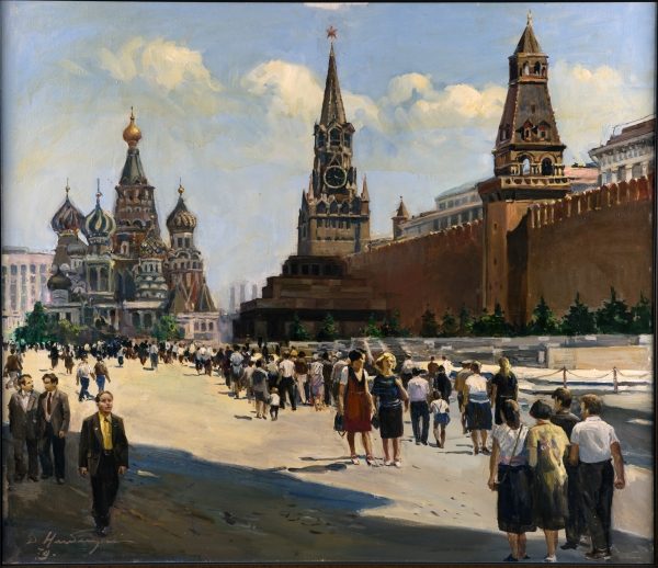 Перед художниками соцреализма ставилась задача создавать яркое динамичное искусство, несущее в себе мощный оптимистический заряд, зримые образы великого периода истории с его достижениями, героическим преобразованием, строительством нового общества, нового мира. Марши ударников и колхозников, физкультурников и стахановцев, осеняемые ласково-ободряющей улыбкой вождя, бодрая поступь, патриотическая готовность во взорах, фигуры в белом с цветами в руках, широкие площади и стадионы, сияющая голубизна декоративного неба и красные стяги – все эти сюжеты на живописных полотнах и монументальной мозаике, в кинокартинах и фотографиях, в декоративном искусстве и народных художественных промыслах наполняли повседневный мир советской цивилизации.