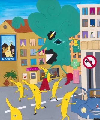 Московский музей современного искусства на Гоголевском бульваре с 13 июля по 17 сентября принимает у себя персональную выставку Вовы Перкина «Перкуссия». Масштабная ретроспектива собрана из основных живописных серий художника, созданных в период с 2016 по 2023 год. Название выставки отсылает к образу вымышленной утки Перкуссии, изображенной на главной иллюстрации проекта, задающей ритм полета всей стае, устремленной за арт-впечатлениями из Майкопа в Москву. (Напомним, что Вова Перкин родом из Майкопа.)