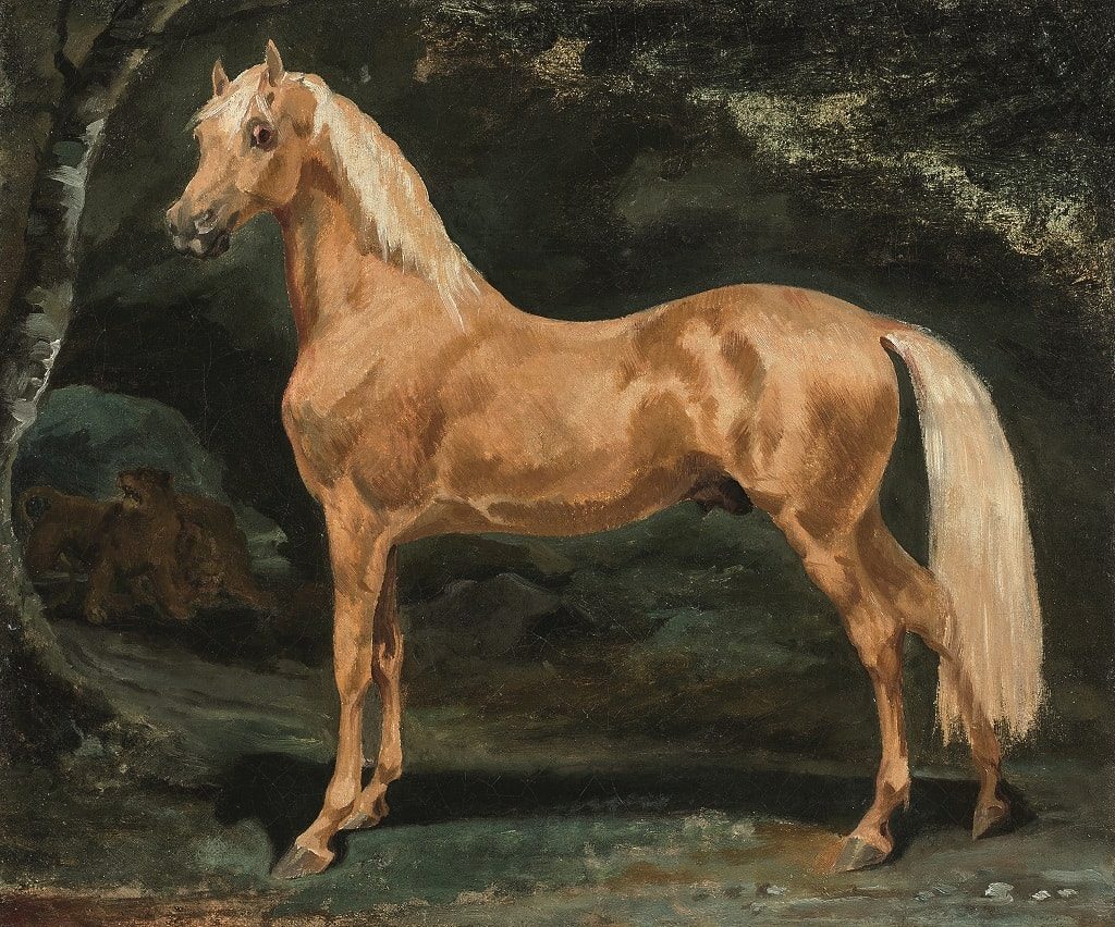 Теодор Жерико. «Арабский жеребец, напуганный двумя львами». 1820 г.
