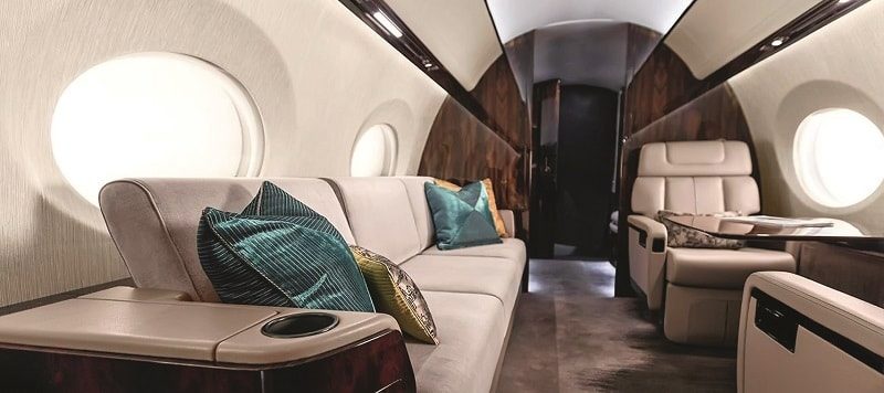Уникальная форма фюзеляжа обеспечивает большой запас пространства при передвижении пассажиров по салону. Сидя в комфортабельных креслах шириной 27 дюймов (68,5 см), пассажиры могут вытянуться во весь рост. Диваны и кресла преобразуются в спальные места. Устойчивые столы для совещаний с регулируемой высотой повышают степень комфорта и удобства во время работы и приема пищи.