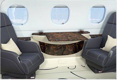 Для максимального комфорта пассажиров Embraer выбрал продукцию ведущего мирового поставщика авиационной мебели и оборудования B/E Aerospace. Это стандартные сиденья, которые могут разворачиваться на 360 градусов и включают дополнительные опции – вибромассаж, поддержку поясничного отдела и удобную подставку для отдыха ног. Ширина каждого кресла – 67 сантиметров. Также восемь сидений раскладываются в четыре полноценных спальных места. Еще два спальных места представляют собой раскладывающиеся диваны.