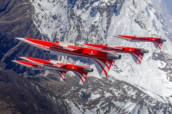 Шоу пилотажной эскадрильи в 1964 году на авиасалоне в Лозанне, а затем и на праздновании 50-й годовщины образования швейцарских ВВС так понравилось жителям Конфедерации, что Patrouille Suisse получила статус отдельной группы, призванной демонстрировать ювелирную точность работы швейцарских летчиков. Правда, сначала география полетов ограничивалась территорией Швейцарии (это объясняли политическим нейтралитетом государства), но правило упразднили в 1978 году, и с тех пор шестерка самолетов в красно-белой раскраске выступает по всему миру. В 1994-м прослужившие им 30 лет британские истребители Hawker Hunter уступили место более скоростным и маневренным F-5E Tiger II производства США. В честь Patrouille Suisse отчеканена серебряная монета номиналом 20 швейцарских франков, часовые мануфактуры посвящали им лимитированные серии наручных часов. В репертуаре группы 20 акробатических воздушных фигур, среди которых встречаются такие забавные названия, как «стул для дойки» и «вилка для фондю».