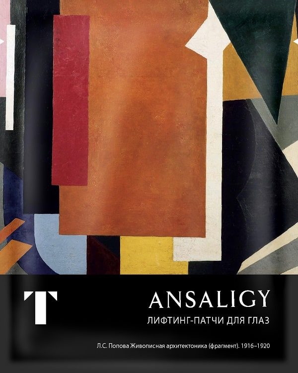 Легендарные патчи марки в коллекции «Авангарад» приобрели новые очертания: классические трансформировались в полусферы, которые идеально ложатся на верхние скулы, их украшает фрагмент полотна Любови Поповой; бамбуковые превратились в вытянутые черные прямоугольники, вдохновленные шедевром Малевича. А ярко-оранжевые патчи-ромбы для межбровной области – абсолютная новинка, отсылающая к строгим линиям, которые так любили авангардисты, – художественным аналогом стало творчество Ивана Клюна.
