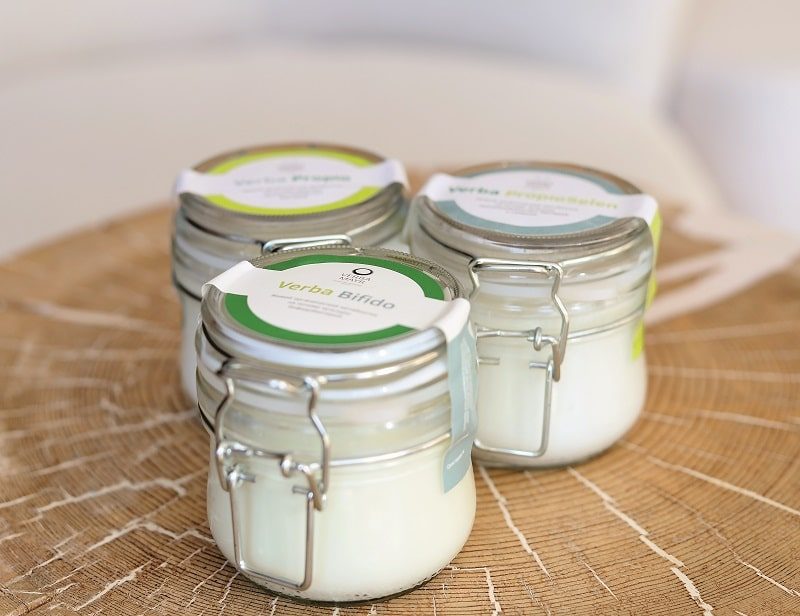 Verba Bifido на основе культуры бифидобактерий уникального штамма B. longum B379M помогает устранить дефицит бифидобактерий и восстановить синтез витаминов, в том числе группы В. А Verba Propio нормализует уровень холестерина в крови. Рекомендованная продолжительность курса приема йогуртов – 21 день. Продукты назначаются после консультации с врачом в клинике Verba Mayr в Подмосковье и изготавливаются в течение двух дней после заказа.