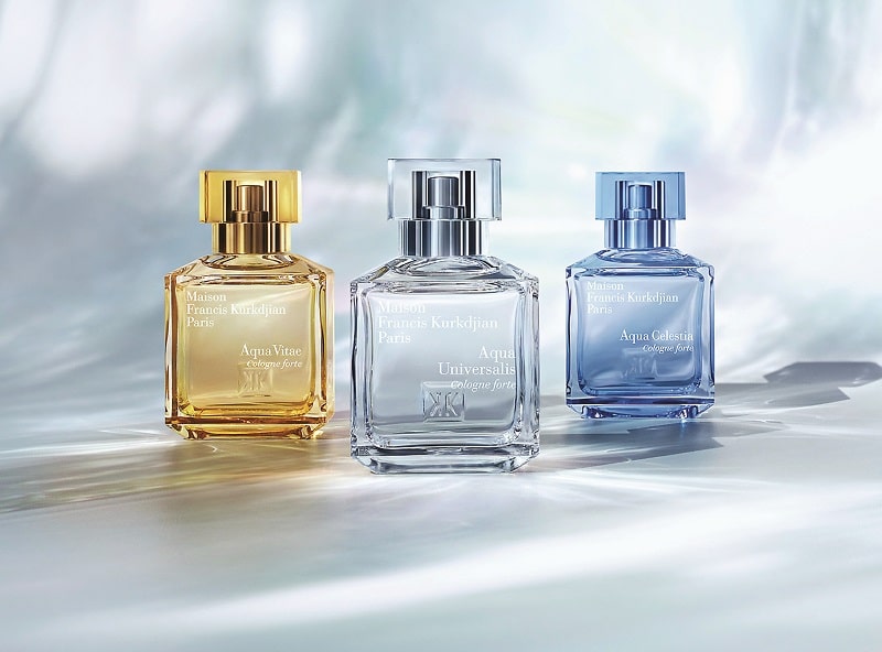«Mens sana in corpore sano: в здоровом теле здоровый дух», – для Франсиса Кюркджяна эта цитата в нескольких словах описывает преимущества одеколона – он обладает приятным запахом и позволяет чувствовать себя бодро. Во всех трех ароматах присутствуют ноты бергамота, обязательного ингредиента классического одеколона, и белого мускуса, плюс разные парфюмерные акценты: в первом это мандарин, во втором – белые цветы, звучание Aqua Celestia Cologne forte дополнено черной смородиной, жасмином и французской мимозой.