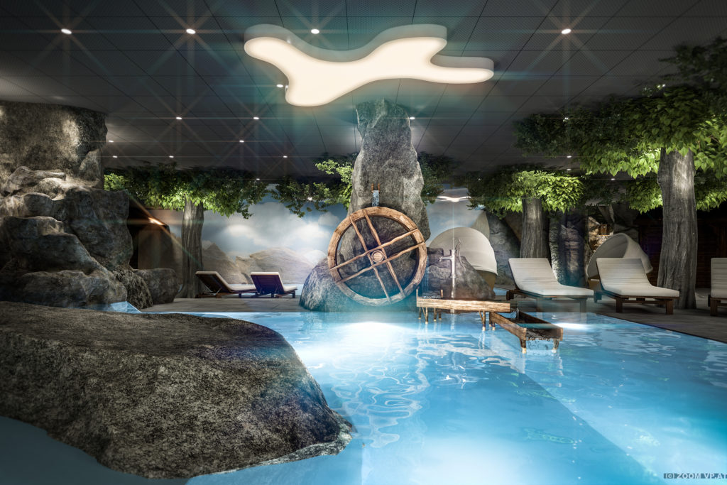 Отель первым в Швейцарии активно развивает тему семейного спа – в апреле 2018 года в нем откроется термальная зона для гостей, не достигших 16 лет. Площадь будет равняться 550 кв. м, а на ее дизайн архитектора Клаудио Карбоне вдохновила история девочки Хайди из повести Иоганна Спири. Также детям предложат специальное меню – маникюр «Bling Bling Fingers», массаж «Funny Choco» и другие процедуры.