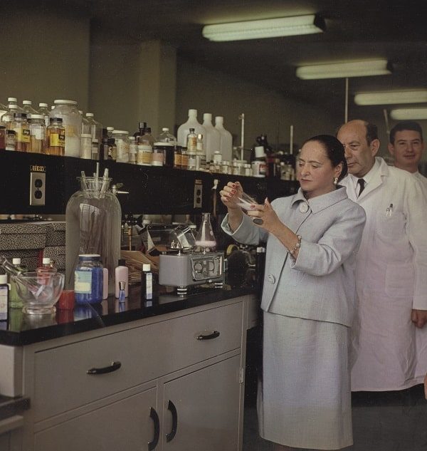 Елена Рубинштейн в лаборатории Лонг-Айленда.
