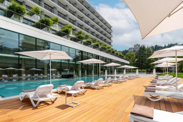 Инфраструктура санатория включает собственный пляжный клуб, круглогодичный акватермальный комплекс с бассейнами с минеральной водой, многоуровневый фитнес-центр и йога-террасу. Для полного восстановления гостям доступны бювет с шестью видами минеральной воды, салон красоты, зоны для отдыха и профессионально организованные детские пространства.