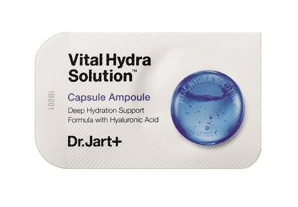5. Увлажняющая биом-сыворотка Vital Hydra Solution, Dr.Jart+, с гиалуроновой кислотой разного молекулярного веса. Упакована в индивидуальные блистеры – это делает процесс использования более гигиеничным и позволяет сохранить высокую концентрацию активных веществ.