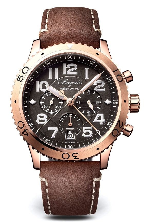 Эстетические коды модели Type XXI 3817 берут начало в богатейшем наследии дома Breguet и его более чем полувековой связи с миром авиации. Автоматический мануфактурный калибр 584Q/2 с кремниевой спиралью баланса по традиции усложнен flyback-хронографом. Циферблат грифельного цвета составляет биколорный ансамбль с корпусом из 18-каратного розового золота.
