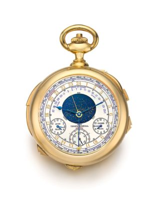 Карманные часы Calibre 89 знаменитой мануфактуры Patek Philippe называют самыми сложными в мире. Образец высокого часового искусства Haute Horlogerie был выпущен в 1989 году в честь празднования 150-летия бренда всего в четырех экземплярах – с корпусами в белом, желтом и розовом золоте и в платине. В каждых – 33 усложнения и более 1700 деталей; каждая коллекционная модель знала своего хозяина еще до выпуска. На открытом аукционе ранее появлялись лишь часы из белого золота, проданные на торгах Antiquorum более чем за $5 млн в 2004 году. Нынешний шедевр из желтого золота специалисты оценили в $6,4–9,9 млн.