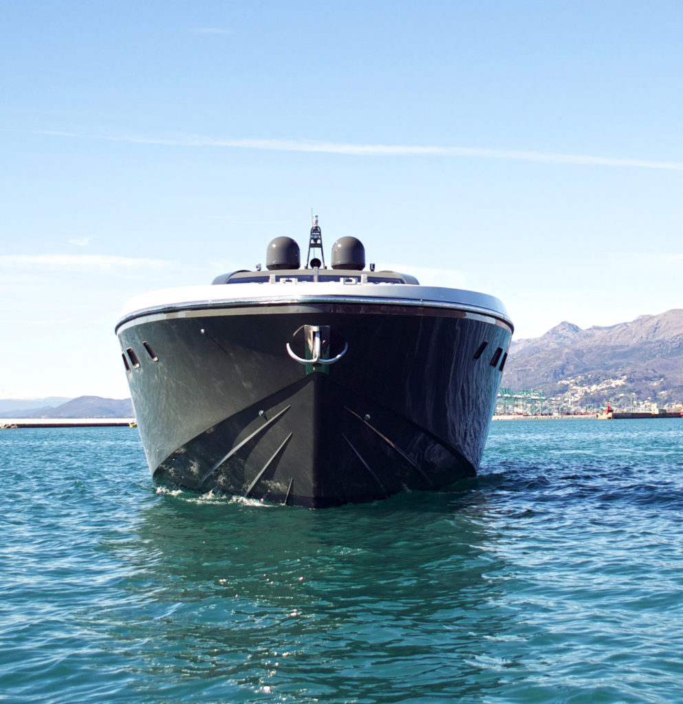 Эта яхта построена на платформе Millenium 80 HT, доказавшей свою эффективность и мореходность, – чтобы сократить расходы на строительство, итальянская верфь OTAM берет за основу проверенный корпус, а уж его «начинка» для каждого заказчика делается стопроцентно кастомной. Так, четвертая в линейке яхта Mystere оборудована не четырьмя, а двумя двигателями, что позволило создать более просторное, воздушное жилое пространство – по просьбе клиента 25,5-метровое судно получило целых два мастер-сьюта. В интерьере присутствуют лакированное эбеновое дерево, хромированная сталь, шелковые и кашемировые ковры. На ходовые качества все эти изменения ничуть не повлияли: корпус в форме «глубокое V» обеспечивает уверенное вождение даже в сложных погодных условиях, а 2600 «лошадей» в машинном отделении позволяют держать круизную скорость в 41 узел, выжимая на максимуме до 48 узлов!