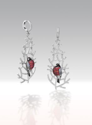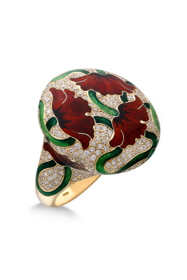 Эмаль в творческой биографии Ильгиза появилась случайно, да и к ювелирному делу он пришел далеко не сразу. Уроженец небольшого городка Зеленодольска и выпускник Казанского художественного училища в конце 1980-х занимался традиционными техниками батика и витража, затем принимал участие в проекте по изучению и восстановлению драгоценностей булгарских татар (для чего отправился в горный кишлак в Туркмении), потом, вернувшись в Казань, ремонтировал ювелирные украшения и постепенно осознал, что этому делу стоит поучиться. Поворотным моментом в его судьбе стала выставка в Пуатье в 1996 году – буквально за два месяца до ее открытия на встрече с поставщиком ювелирных инструментов Ильгиз узнал о существовании ювелирной эмали и решил попробовать. В итоге во Францию отправилась совершенно новая коллекция из 40 цветных украшений. Сегодня Ильгиз понимает, что эмаль – не только удивительная палитра красок (а цвета ему не хватало всегда): «Эмаль позволяет гораздо точнее воплотить идею в готовом изделии, она открывает новые возможности передачи объема, формы, прозрачности». Ювелир остановил свой выбор на горячей эмали: во-первых, именно она дает максимальное разнообразие оттенков (более 100, для сравнения обычные эмальеры используют всего 20), а во-вторых, она намного прочнее холодной эмали, а значит, драгоценностям гарантирована долгая жизнь. У Ильгиза есть свои фирменные секреты и рецепты. Он единственный смешивает дулевскую эмаль (минеральные пигменты) и лиможскую (растительные красители), обжигает изделия при температуре +950 °С (общепринятая температура на 150–200 °С ниже). А при работе над серией художественных циферблатов Bovet применил технику фандом – слой прозрачной отполированной эмали наносится поверх живописной миниатюры и даже бриллиантового паве. Главный источник вдохновения украшений Ilgiz F. – природа: серьги с мечущимися бабочками или с будто живыми снегиря- ми, сидящими на ветках, крупные выразительные кольца с маками, ирисами, цветками артишока. «Самое трудное – создать ощущение живого цветка, передать энергетику природы». Некоторые из его украшений уже приобрела Оружейная палата, а 1 апреля в Кремле открывается экспозиция «Драгоценности, вдохновленные природой. Ильгиз Ф.». На ней будут представлены более 250 украшений – более половины из них созданы специально к выставке.