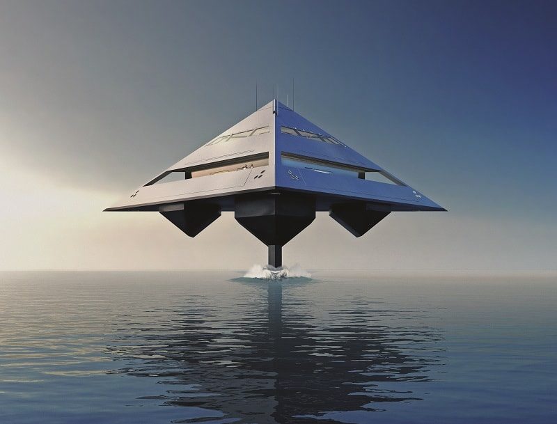 Идея, предложенная английским архитектором Джонатаном Швинге, ломает стереотипы корабельного дизайна – у него получилось нечто среднее между яхтой и самолетом. А то и космическим кораблем. Пирамида со стороной 21,6 м представляет собой судно с подводными крыльями: по мере повышения скорости корпус будет подниматься над водой, и у пассажиров создастся полное ощущение полета. Как бы фантастически это ни выглядело, инженеры компании Maritime Applied Physics Corporation, в сотрудничестве с которой идет работа над проектом, уже рассчитали потребную тягу, обеспечивающую Tetrahedron’у возможность передвигаться даже в штормовую погоду. А также адаптировали автоматическую пилотную систему fly-by-light (она заимствована из авиапрома), которая позволит управлять кораблем на скорости потока даже при значительном крене. Внутри оборудуют каюты для шестерых гостей и четырех членов экипажа, палубы будут раскладными. Пока проект HYSWAS Tetrahedron находится на стадии разработки.