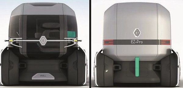 Не менее революционно смотрится и электрический «беспилотник» Renault EZ-Pro, о котором его создатели говорят, что он вдохновлен внешним видом кейса для ланча. Предполагается, что электрическая «самоходка» сможет самостоятельно приезжать по заданному адресу, а заказчик – открывать нужную ячейку в грузовом отсеке командой со смартфона.