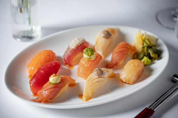 Ресторан предлагает оригинальную азиатскую кухню такой, какой она точно понравится завсегдатаям Патриков. Никакой классики и чистых вкусов. Например, суши тут делают на «рисе» из белой спаржи и цветной капусты. Есть с мраморной говядиной, копченым угрем, креветкой и красной икрой, масляной рыбой с трюфелем и обожженным гребешком. Те, кто придерживается правильного питания и считает калории, – в полном восторге.