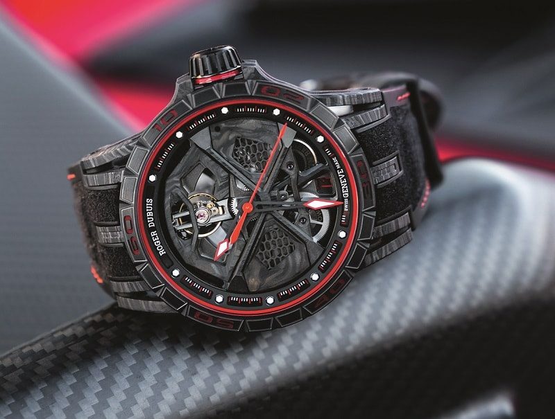 Модель Excalibur Huracan с окном даты в форме гексагона и вращающимся, словно колесо, ротором воплотила в себе все знаковые черты автомобиля V1O Lamborghini Huracan. Узор «пчелиные соты» на Excalibur Huracan Perfomante вызывает ассоциации с воздухозаборниками и дает понять, что в этом механизме тоже есть мощный двигатель. А Excalibur Pirelli Flying Tourbillon, помимо скелетона с парящим турбийоном, отличает ремешок с титановыми шипами, выполненный из шины суперкара-победителя «Формулы-1».