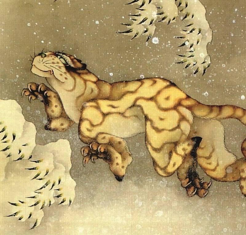 Любопытна особенность тигра как темы произведения искусства – его способность становиться навязчивой идеей. Как, например, в случае с поэтом и художником Уильямом Блейком, автором знаменитых строк «Тигр, тигр, жгучий страх…». Блейк постоянно изображал тигра в списках этого стихотворения. Подобной одержимостью в последние годы своей жизни страдал и легендарный Хокусай. Непрестанно рисуя львов и тигров, художник называл это «ежедневным экзорцизмом». Один из последних рисунков Хокусая, «Старый тигр в снегу» (1849), в 1998 году был продан за $772 тыс. на Christie’s и с тех пор находится в частной коллекции.