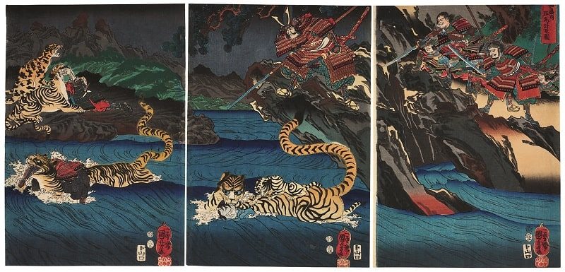 Утагава Куниёси. «Генерал Ватонай, побеждающий тигров». 1855 г. Sotheby’s